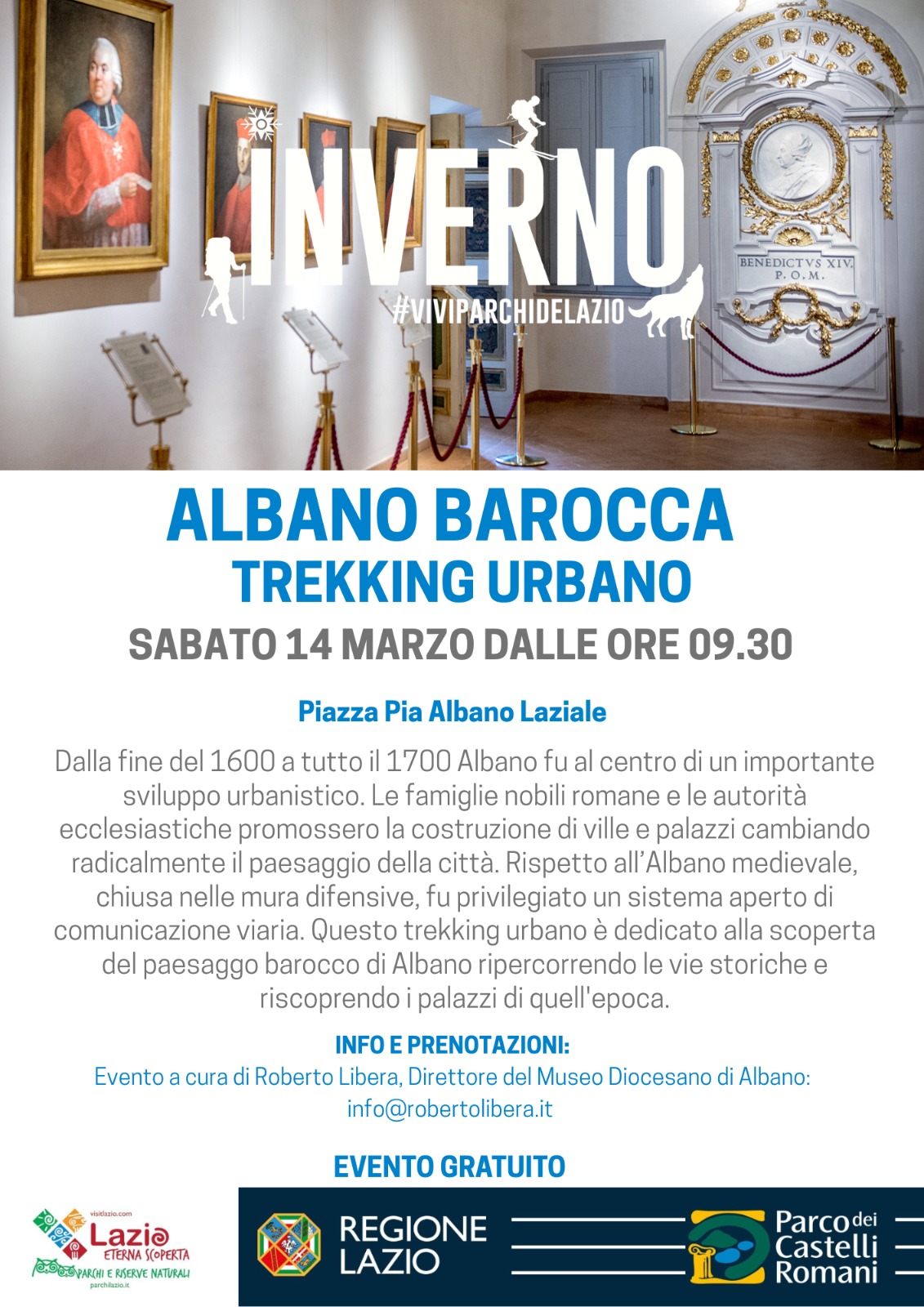 L’evento a cura di Roberto Libera, direttore del Museo Diocesano di Albano, è gratuito. Per informazioni e prenotazioni: info@robertolibera.it
